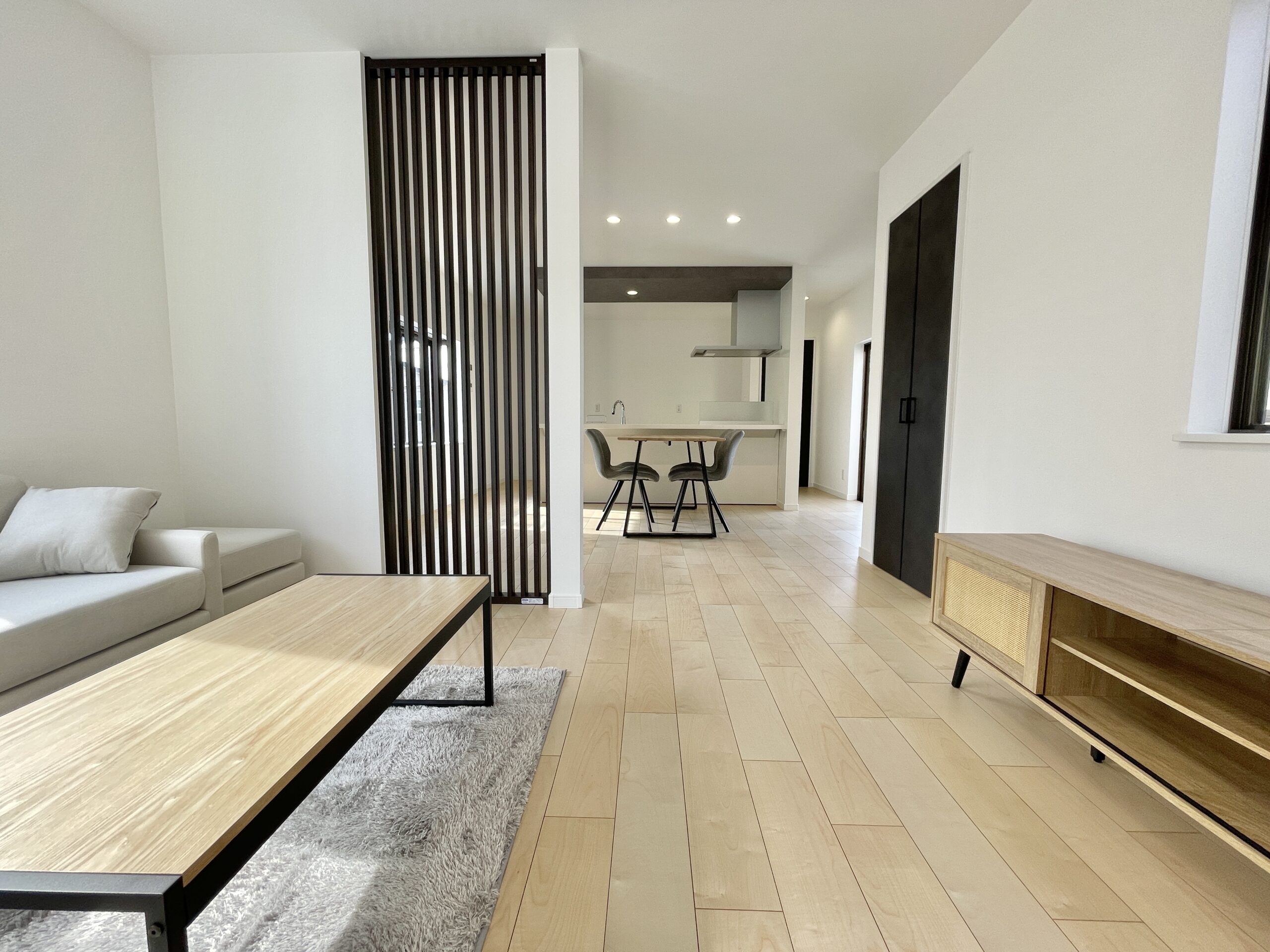 チャコールの格子がアクセントの広々とした空間です◎ -
