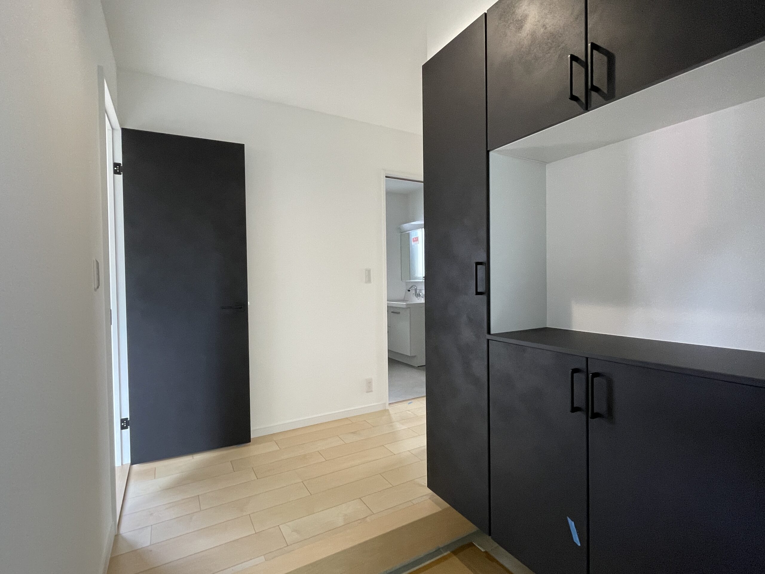 玄関扉は引戸のため、広々とした空間になっています。 -
