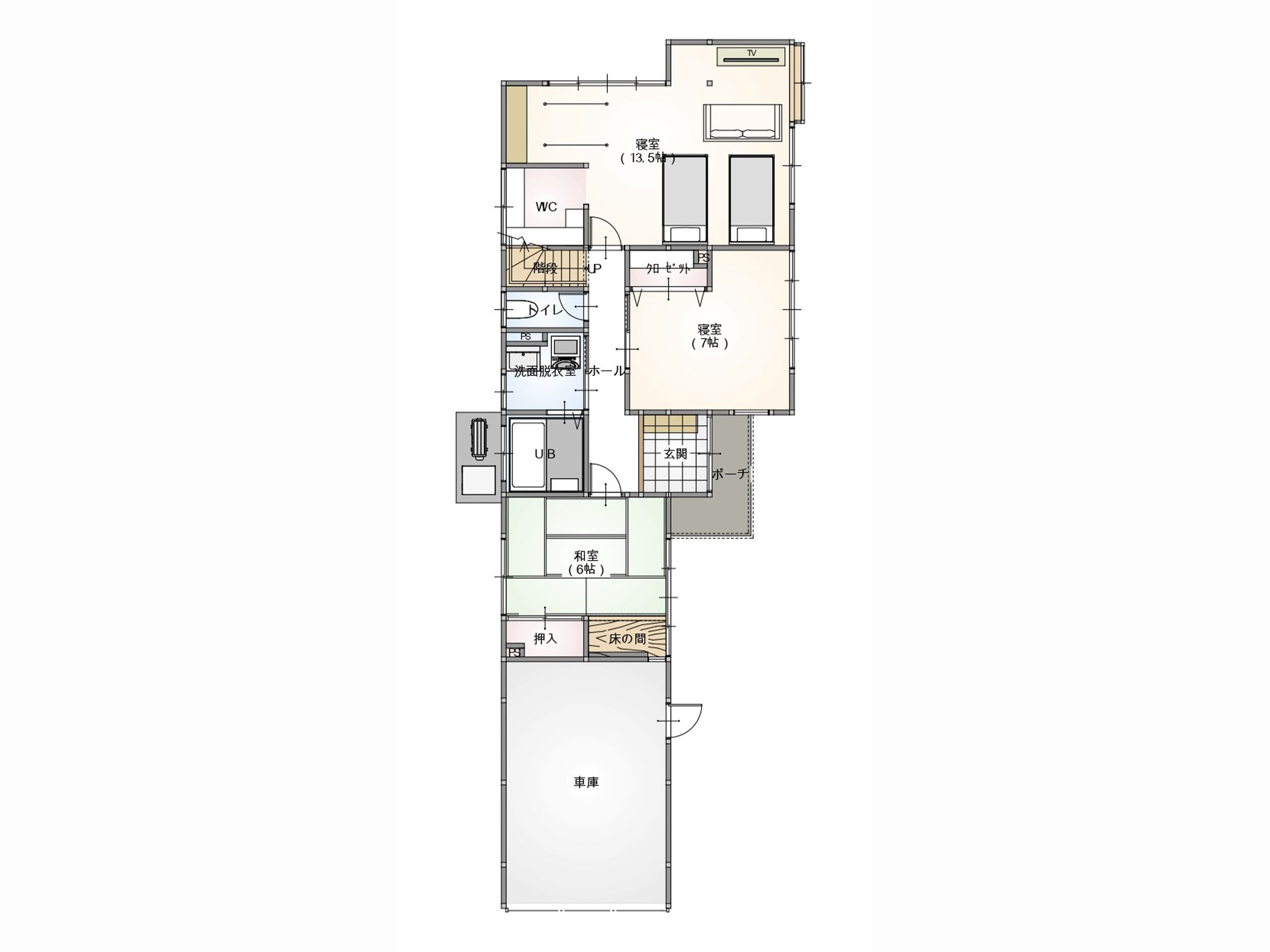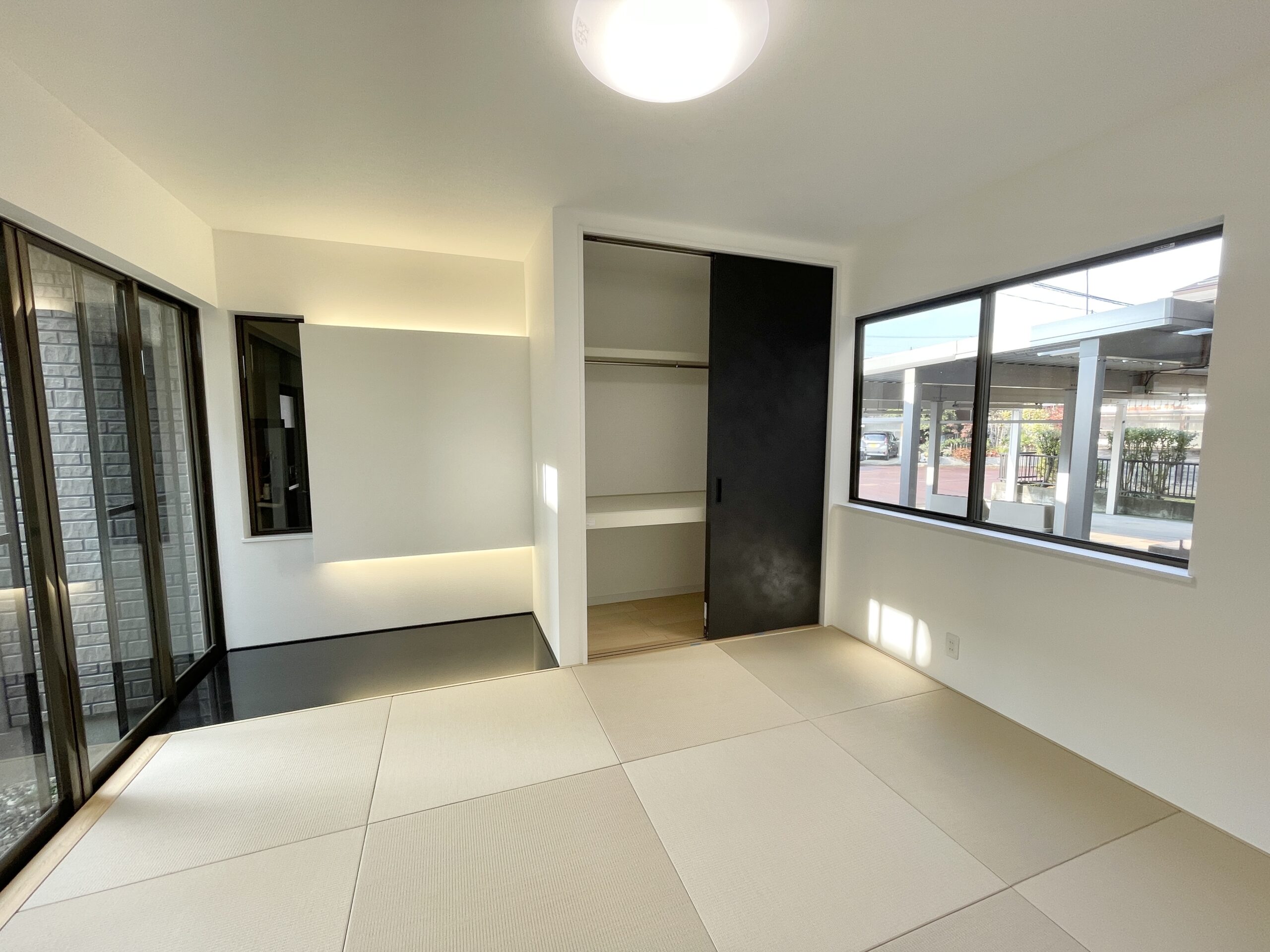 畳をベージュにすることで家全体の雰囲気を統一し、明るい和室を演出しました。 -